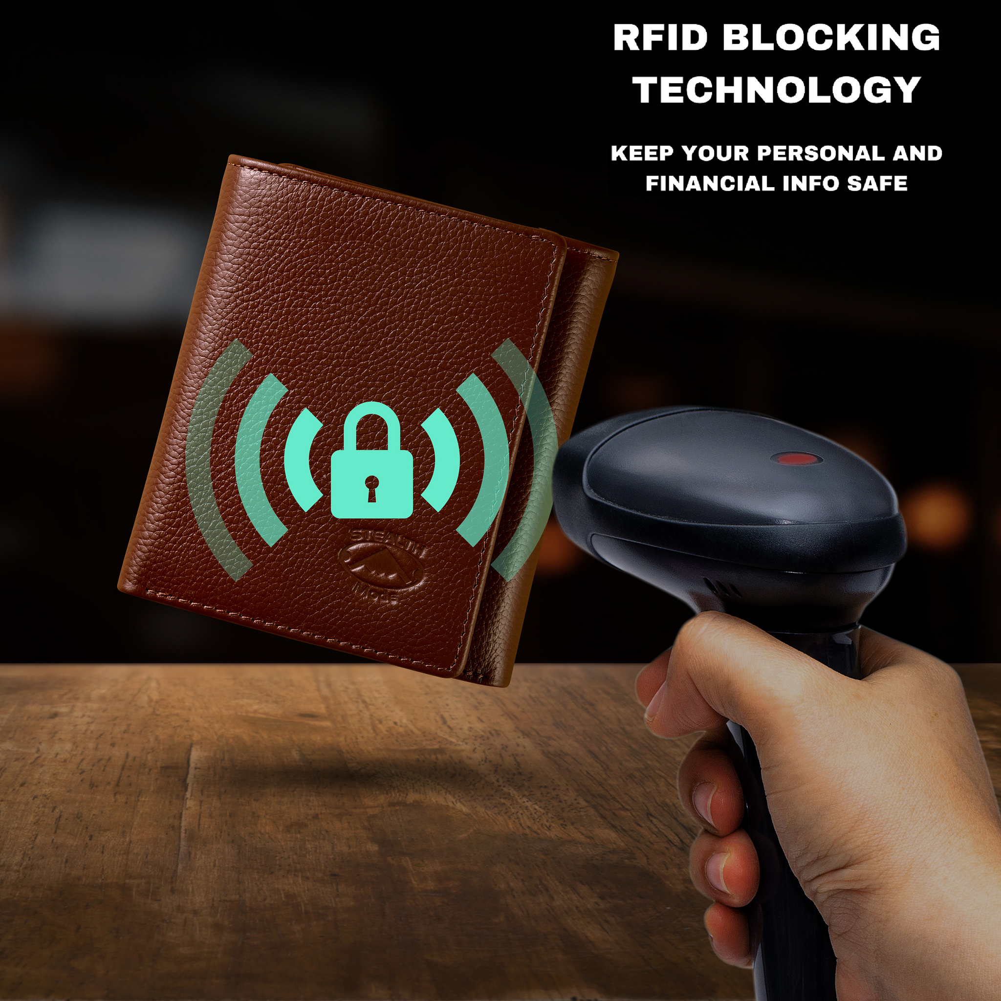 • This trifold RFID wallet for men helps keep your personal and financial info safe by blocking malicious attempts to steal your identity from your chip enable cards